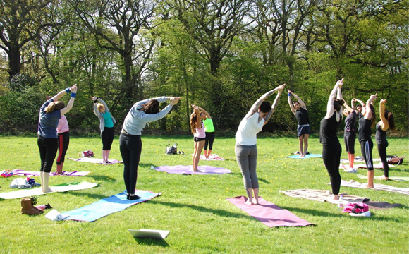 舒適衣物、毛巾與水。實體課程建議自備瑜伽墊,未備可租借(小額費用)。